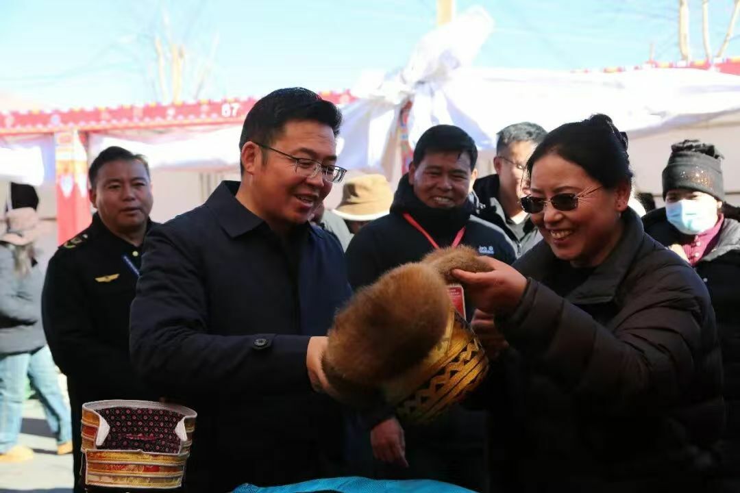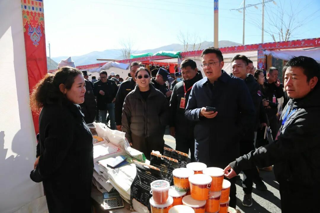 尤刚听后十分高兴,对围拢过来的工作人员和商户说道:“这很好!传统农特产品是我们琼结的宝贵财富,也是乡村振兴的重要产业。你们不仅要继续坚守和挖掘特色,还要在产品创新、实用功能、品质把控上下功夫。”他进一步鼓励道,“要充分利用好‘促消费暨展销会’这样的平台,让更多人了解、喜爱我们琼结的特色农产品,让这些承载着文化和技艺的农特产品、不仅卖得好,更能走得远,真正成为群众增收的‘幸福产业’。”