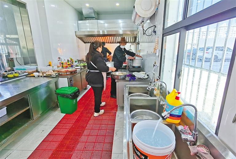 乃东区红星社区食堂工作人员正在准备饭菜。 本报记者 孙开远 摄