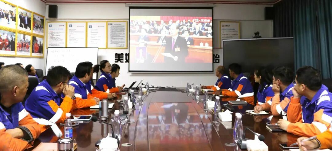 在华新水泥(西藏)有限公司收听收看开幕直播现场,大家凝神聆听、认真记录,现场秩序井然,交流学习氛围浓厚。