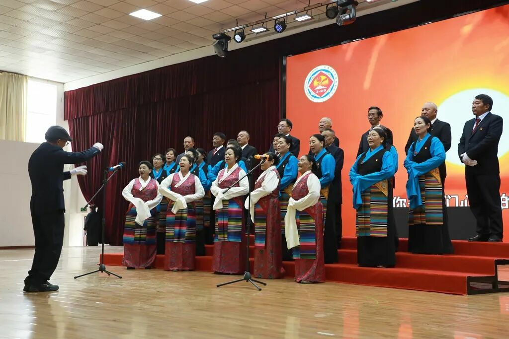 随后,红色歌曲大合唱环节将活动推向高潮。泽当老干部服务站老年艺术团以一曲欢快的舞蹈《吉祥祝福颂祖国》开场,瞬间点燃了现场气氛。紧接着,《我和我的祖国》《中国,中国,鲜红的太阳永不落》《没有共产党就没有新中国》等经典红色歌曲轮番上演。老同志们用嘹亮的歌声、饱满的热情,抒发了对党的无限忠诚、对祖国的无比热爱。每一首歌都承载着一段历史,每一句歌词都凝聚着一份深情,现场观众沉浸在激昂的旋律中,不时爆发出热烈的掌声。