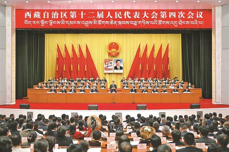 王君正指出,自治区十二届人大四次会议是一次高举旗帜、凝心聚力、团结奋进的大会。会议期间,与会代表以饱满的政治热情,聚焦党中央决策部署和自治区党委工作安排,聚焦未来五年西藏经济社会发展,聚焦人民群众所思所盼所想,依法履职尽责,积极建言献策,展现了新时代西藏人大代表的良好精神风貌和使命担当。与会代表高度评价了“十四五”时期西藏经济社会发展取得的重大成就,一致认为,在以习近平同志为核心的党中央坚强领导、关心重视下,自治区党委团结带领全区各族干部群众,经过五年不懈努力,推动西藏经济社会持续快速发展,社会主义现代化新西藏建设迈出了坚实步伐、站在了新的历史起点上。与会代表充分肯定了2025年全区经济社会发展取得的成绩,一致认为,2025年是西藏发展历程中极不平凡的一年,习近平总书记率中央代表团出席自治区成立60周年庆祝活动,听取自治区党委和政府工作汇报并发表重要讲话,这在党和国家历史上是第一次,极大鼓舞了全区各族人民共建中华民族共同体、书写美丽西藏新篇章的信心决心;全区各级党委、政府坚持以习近平总书记视察西藏时的重要讲话精神统一全区广大干部群众思想,坚持稳中求进工作总基调,统筹兼顾,持之以恒推动稳定、发展、生态、强边四件大事落实,着力保稳定、抓经济、促发展,各项事业不断取得新进步。与会代表深刻认识到,习近平总书记关于西藏工作的重要指示英明正确,新时代党的治藏方略完全符合西藏实际,只要我们坚定不移沿着习近平总书记指引的方向奋勇前进,只要我们不折不扣把党中央各项决策部署贯彻好落实好,西藏经济社会发展就会不断从胜利走向新的胜利。