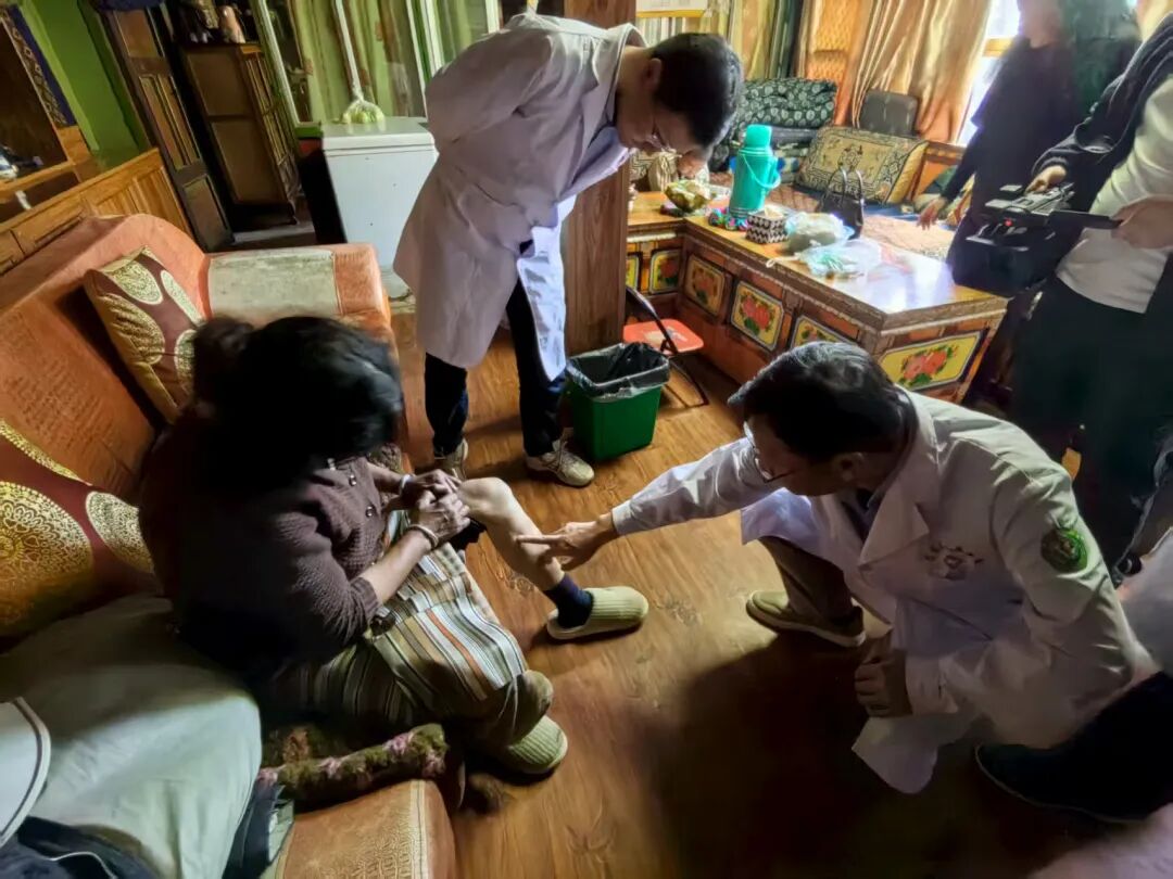 当日下午,在湖北荆州市卫健委主任蔡君的带领下,长江大学援藏医疗专家万正东团队与本地医务人员共同前往患者家中进行上门诊断。经详细检查评估后,医疗团队确认患者符合手术指征,随即将其转运至医院进行手术。